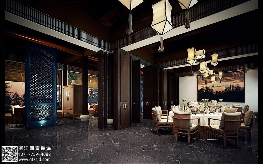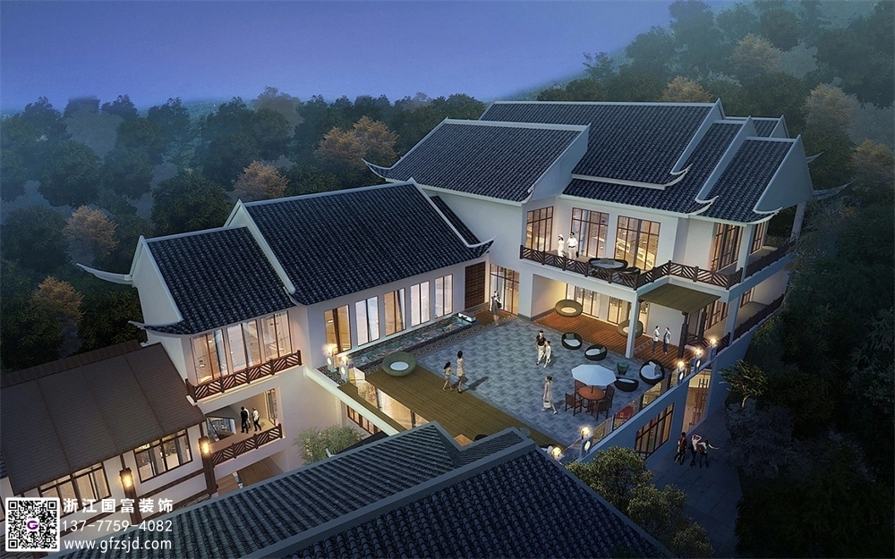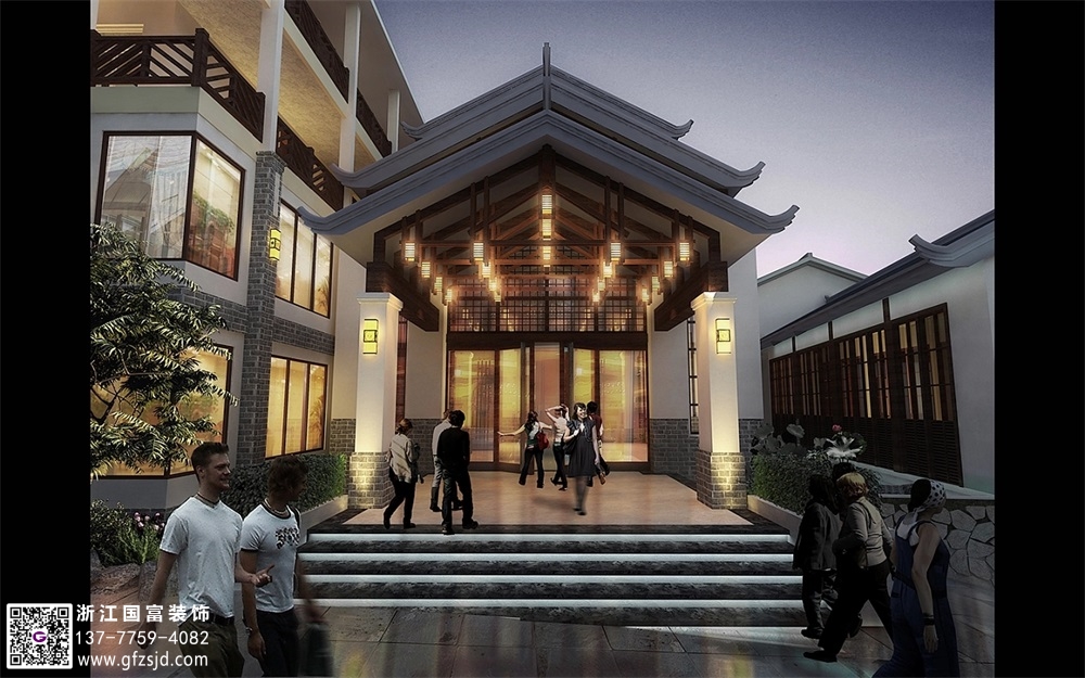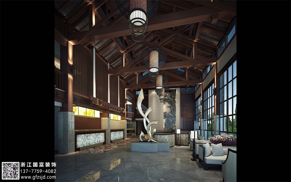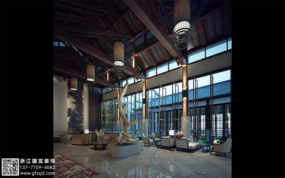 新中式度假酒店裝修設(shè)計案例效果圖